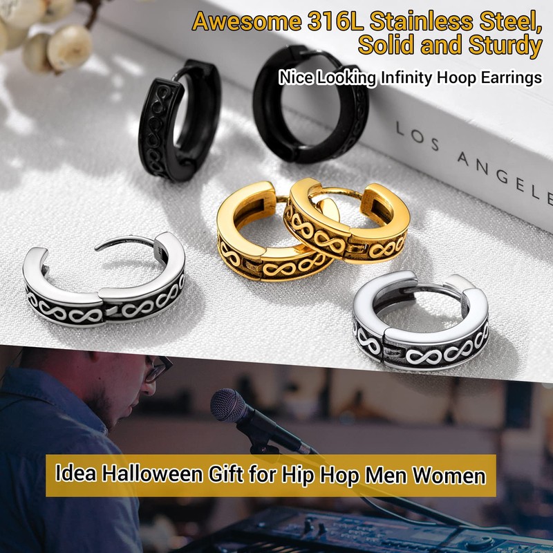 - ♦ Cool Infinity Hoops ♦: Chunky Small Hoop Earrings with Infinity Pattern, Liven Up Your Clothes Without Detracting from its Simplicity, Design for Men Women.