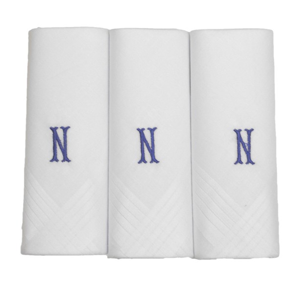 Mens/Gentlemens 3 Pack Plain White Handkerchiefs With 1 Letter Name Initials, N