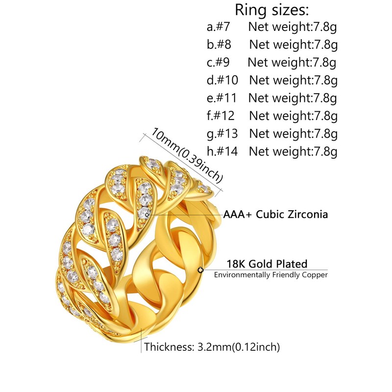 Mens Gold Ring Size 10 Gold Chain Ring Mens Biker Ring Cuban Link Gold Ring