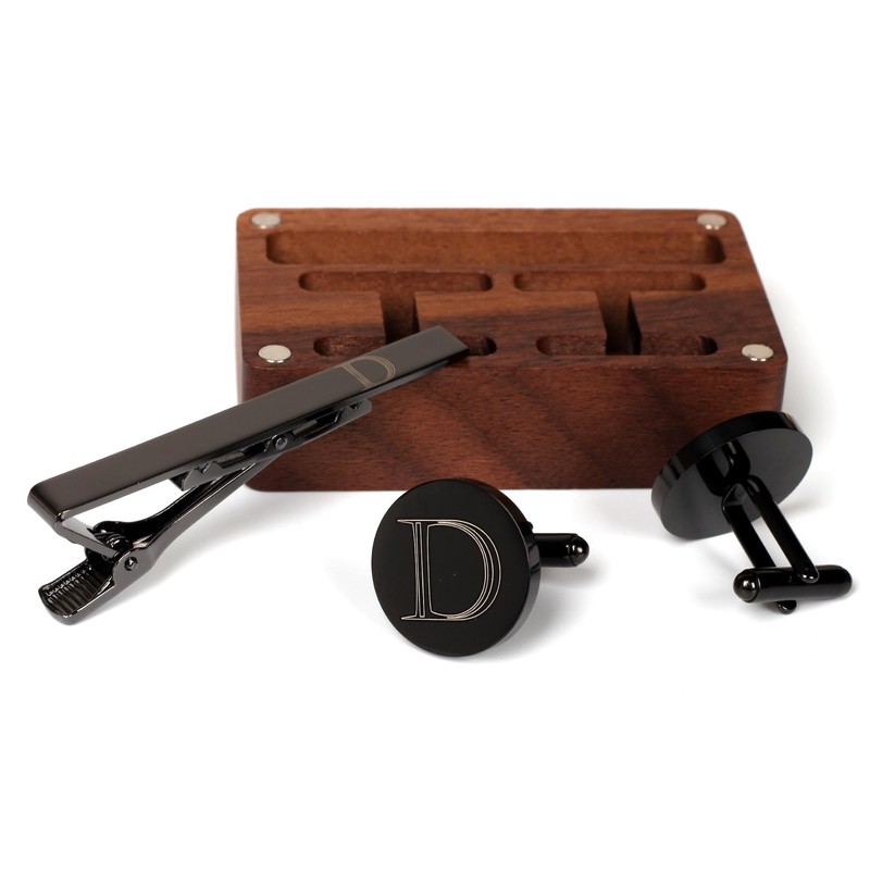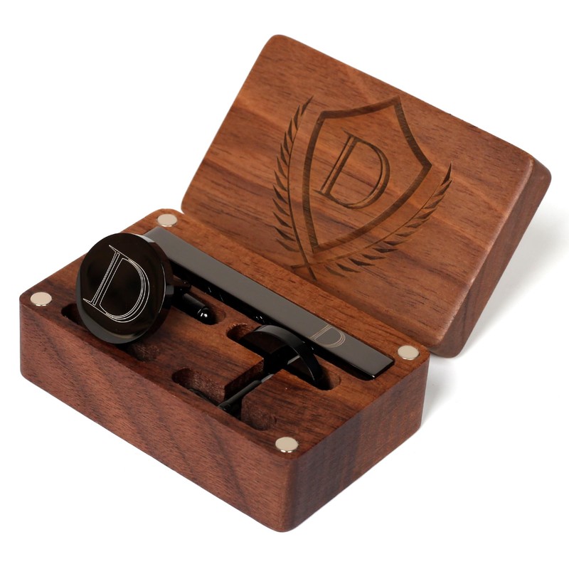 - Personalized Design: Cuff links, tie clip and walnut wood box with engraved A-Z alphabet letter to select.