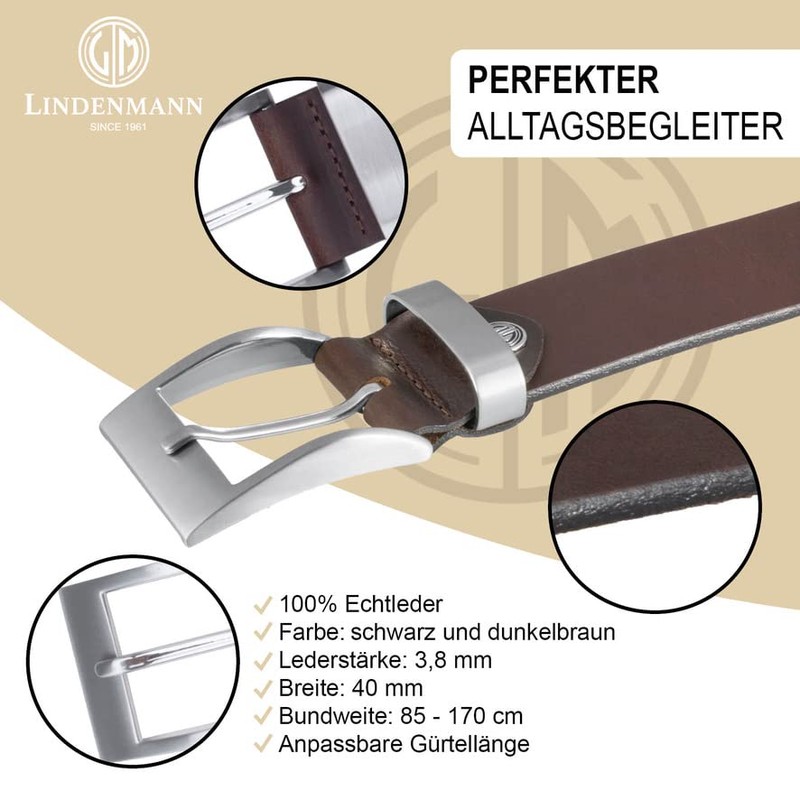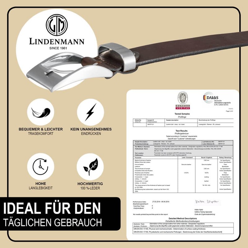 - Whether for the noble leisure wardrobe or elegant business look, this men's belt for LINDENMANN, mad