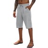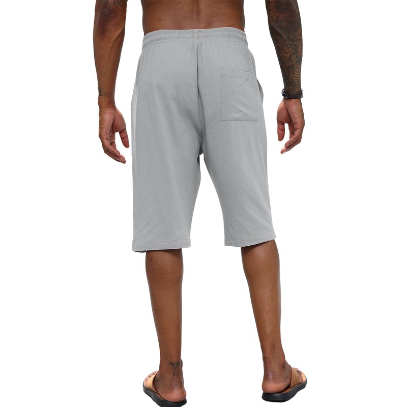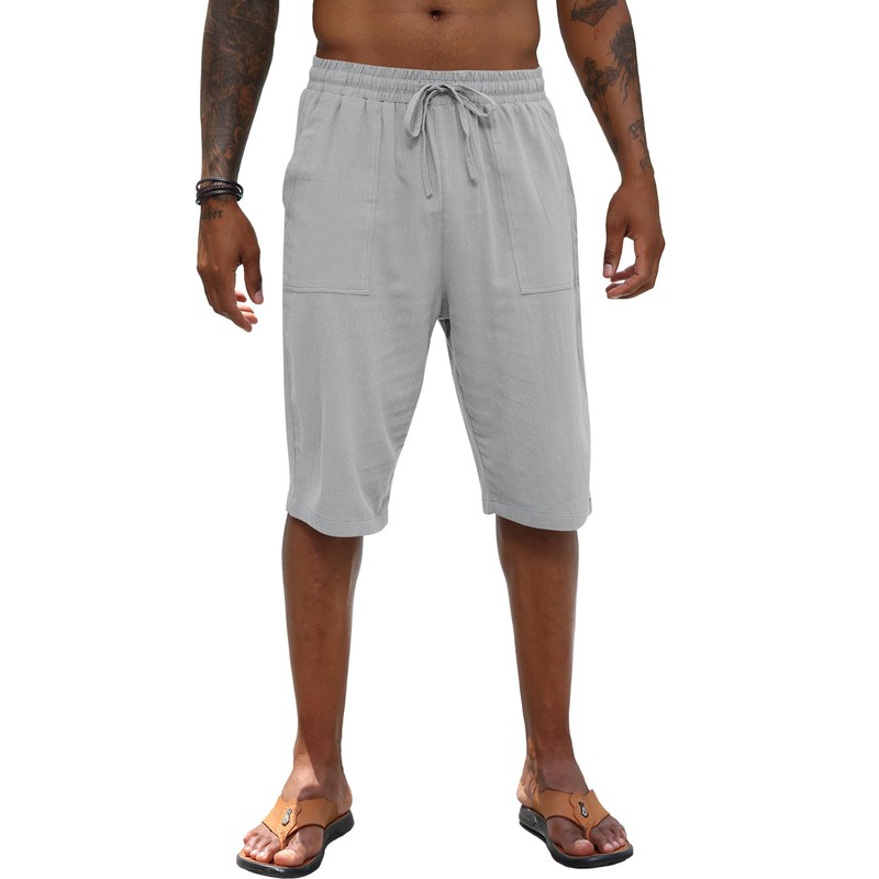 Mens Linen Shorts Casual Cotton Summer Beach Elastic Trousers 3/4 Length Pants Shorts Light Grey