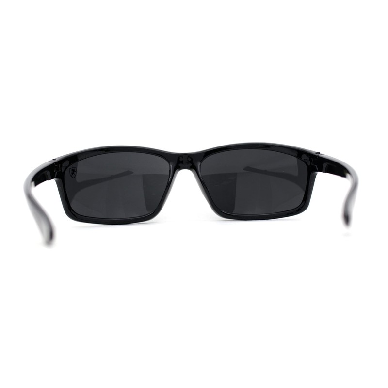 Mens Lion Shield Emblem 90s Racer Rectangle Wrap Sunglasses Shiny Black