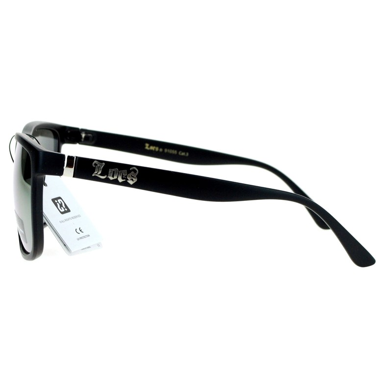 Mens Locs Sunglasses Matte Black Square Frame Fuchsia Mirror Lens UV400