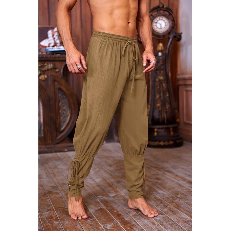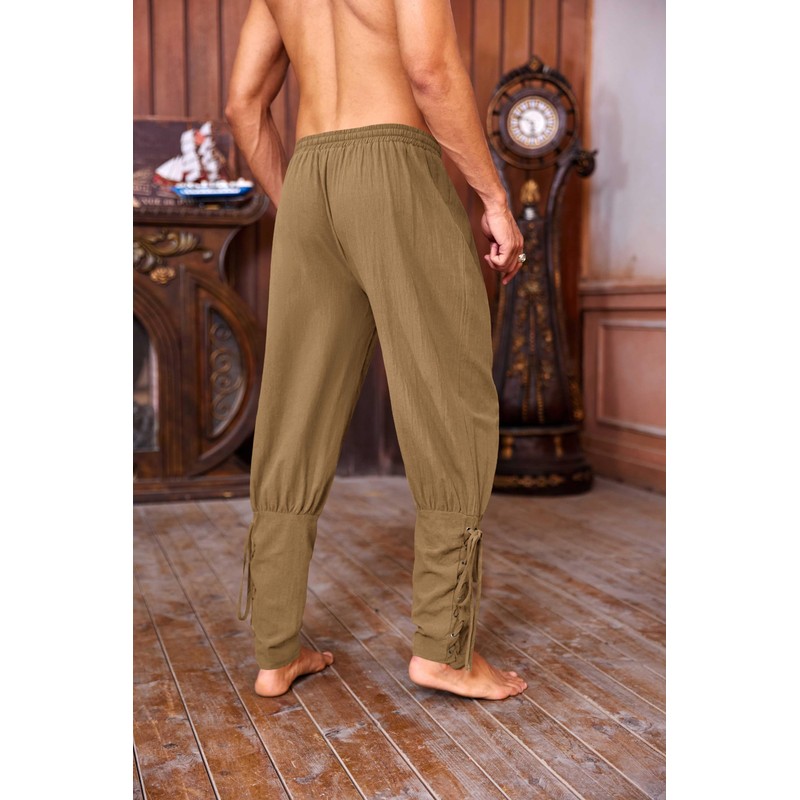 Mens Medieval Ankle Pants Viking Pirate Renaissance Costume Lace Up Tapered Banded Navigator Casual Trousers