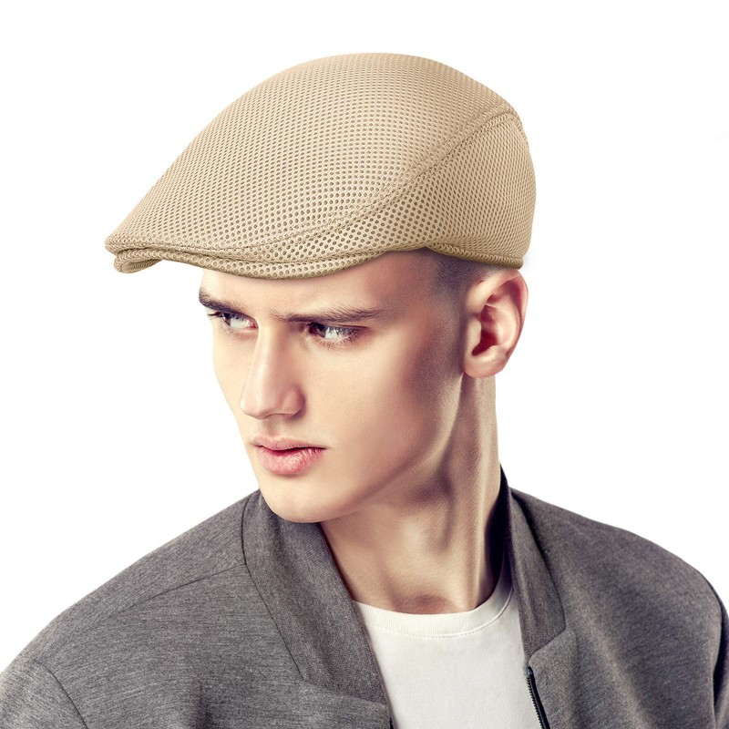 Mens Mesh Flat Cap Breathable Summer Newsboy Hat Cabbie Flat Cap, Classic Colors, Medium