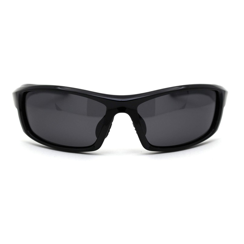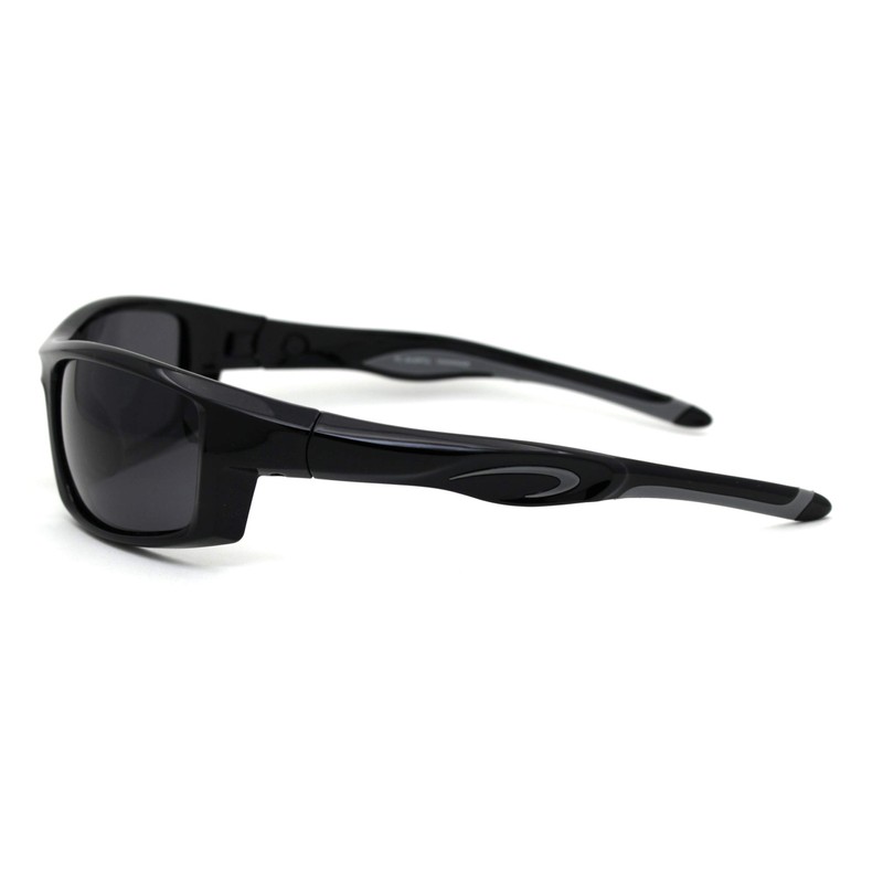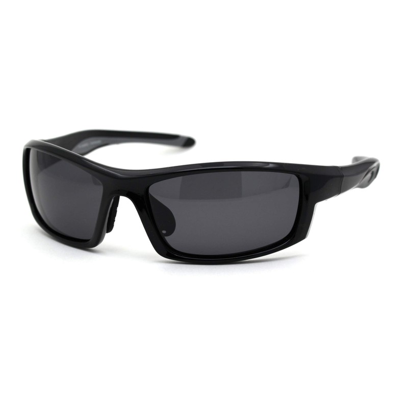 Mens Polarized Plastic Rim Warp Sport Sunglasses Shiny Black Black