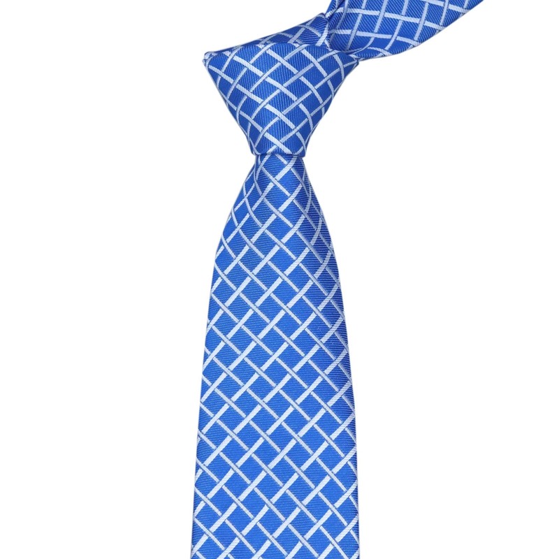 Mens Repp Soft Blue White Silk Tie Checkered Diamonds Woven Working Summer Suit Necktie Birthday Gift for Guys