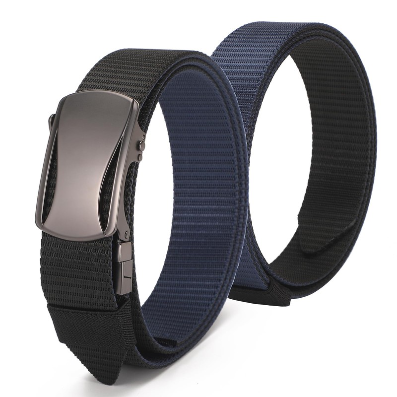 - ✅ EASE OF USE - Slide the belt into the auto locking sliding buckle, pull the belt through, click-it to a comfortable position and the buckle will automatically lock on the belt strap. To release this casual belt, gently push the lever on the side of the automatic buckle, the lock is released and the auto belt can be removed. Some auto locking buckles do not have a lever on the side and will release the belt when the top half of the buckle is lifted. The ratchet design in the strap gives you endless micro adjustments adapting to your waist size. Simple, smooth, and sleek operation!