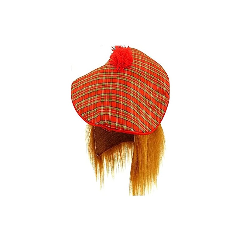 Mens Scottish Scots Tartan Tam Hat & Ginger Hair Wig Stag Night Fancy Dress Hat