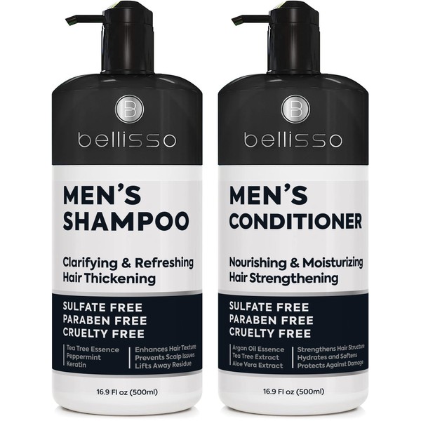 - DEEP CLEANSING ACTION: This mens shampoo and conditioner set from Bellisso is crafted to be tough on buildup, but gentle on your scalp. With a special formula that easily removes sweat, grime and residual hair product, our conditioner and shampoo for men is what modern guys need to stay looking their best. Keep yourself looking fresh and smelling clean with this advanced shampoo and conditioner set men are sure to love.