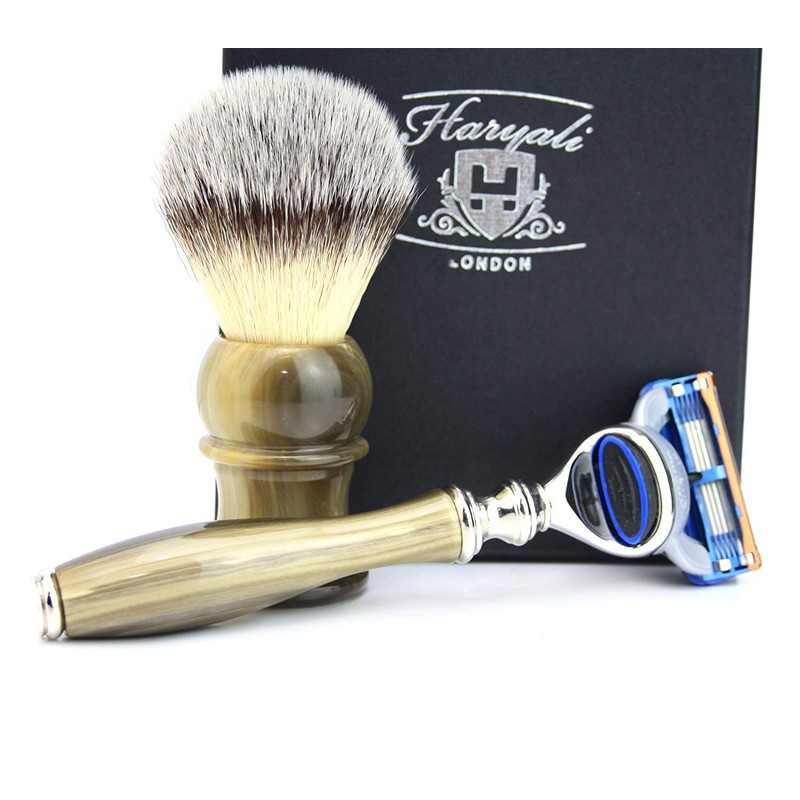 Mens Shaving Kit Synthetic Hair Shaving Brush & 5 Edge Razor with Stimulated Horn Handle Comes in Gift Box