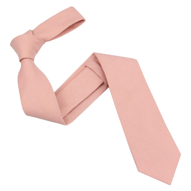 Mens Slim Width Color Linen Neckties - Standard and Extra Long Tie (Ballet Pink, Standard 58 ")