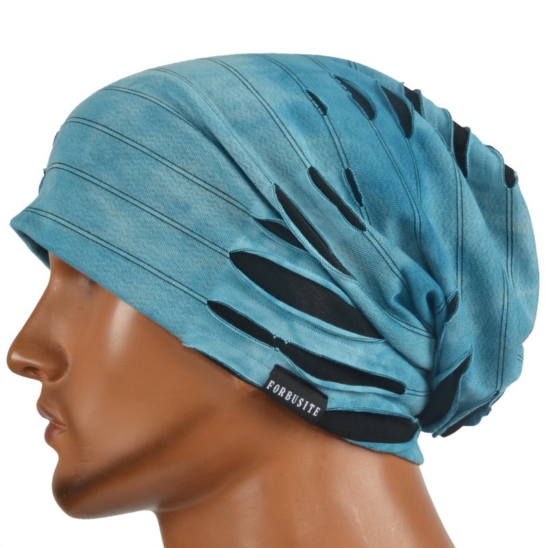 Mens Slouch Hollow Beanie Summer Skullcap B090 (Blue, Thin Cool)