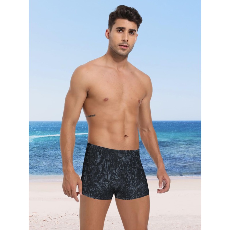 - 【High Chlorine Resistant】The mens square leg swimsuit are made of 4-Level chlorine resistant fabric that added longevity, more endurance and worth to prevent chaffing and fadding, holding up great in the chlorinated pool. More durable, keep shape and color retention after many times wearing.