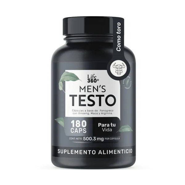 Mens Testo Life360 Fenogreco, Maca, L-Arginina Suplemento Alimenticio Hombre 180 Cpsulas Sin Sabor Testosterona Hombre