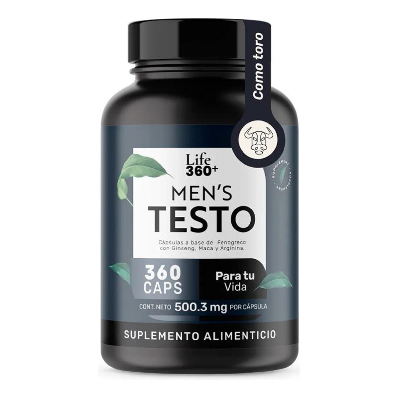 Mens Testo Life360 Fenogreco, Maca, L-Arginina Suplemento Alimenticio Para Hombre 360 Cpsulas Sin Sabor. Testosterona Hombre