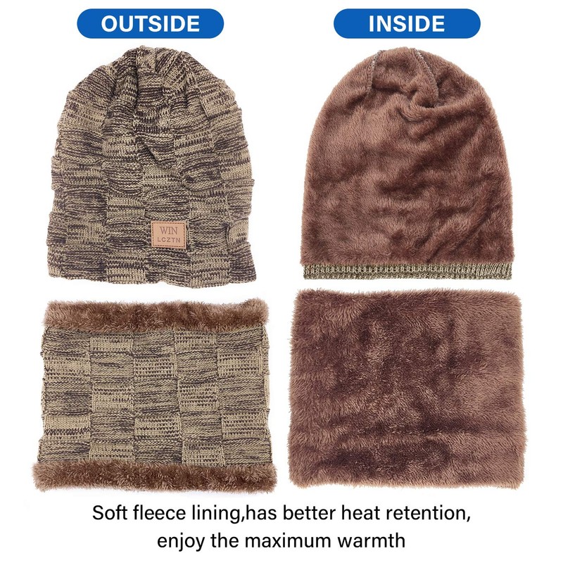 - Warm: The winter ski hat and scarf is double layers design,made of 100% comfortable acrylic fabric and soft fleece lining, has better heat retention, provide extra warm on your head ears and neck, you can use it separate or together as you wish.