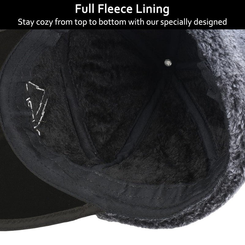 Mens Winter Trapper Hat - Russian Hat with Ear Flaps and Face Mask, Snow Hat with Visor, Warm Baseball Caps for Men Women