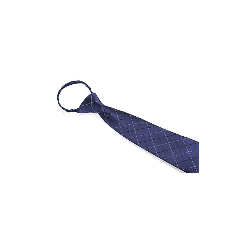 Mens Zipper Pre-tied Clip-On Tie Business Wedding Solid Checks Striped Microfiber Necktie, Navy Check, One Size