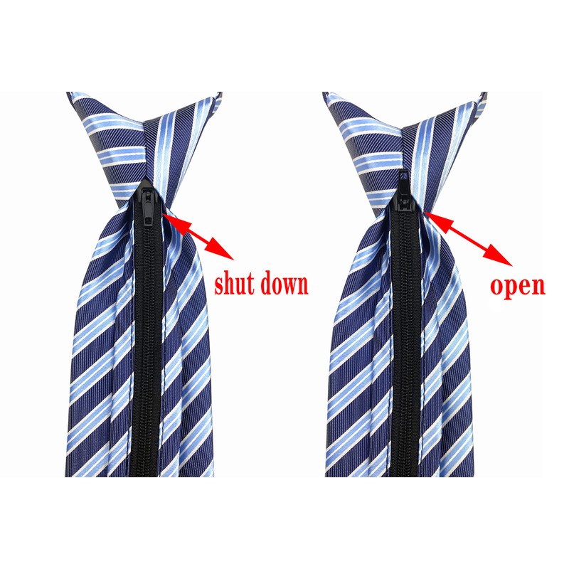 2.A zipper tie is just like a conventional tie except that it has a zipper for adjustabllity and a permanent knot.Wearing one is easy and its flexibility makes it an economical choice for any man.