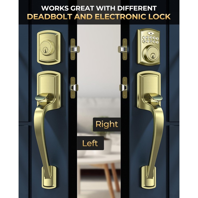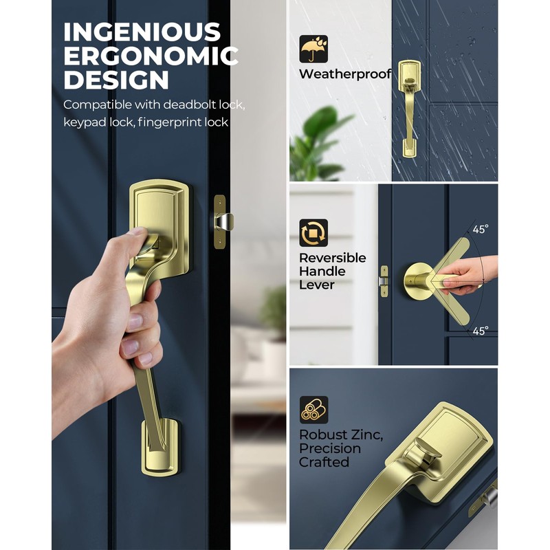 - Weatherproof Design: Finished with a premium electroplating process, the gold front door handle maintains its sleek look while standing up to harsh sun, rain, and humidity. Whether it’s dry or damp outside, this exterior door handles is designed to perform reliably in different weather