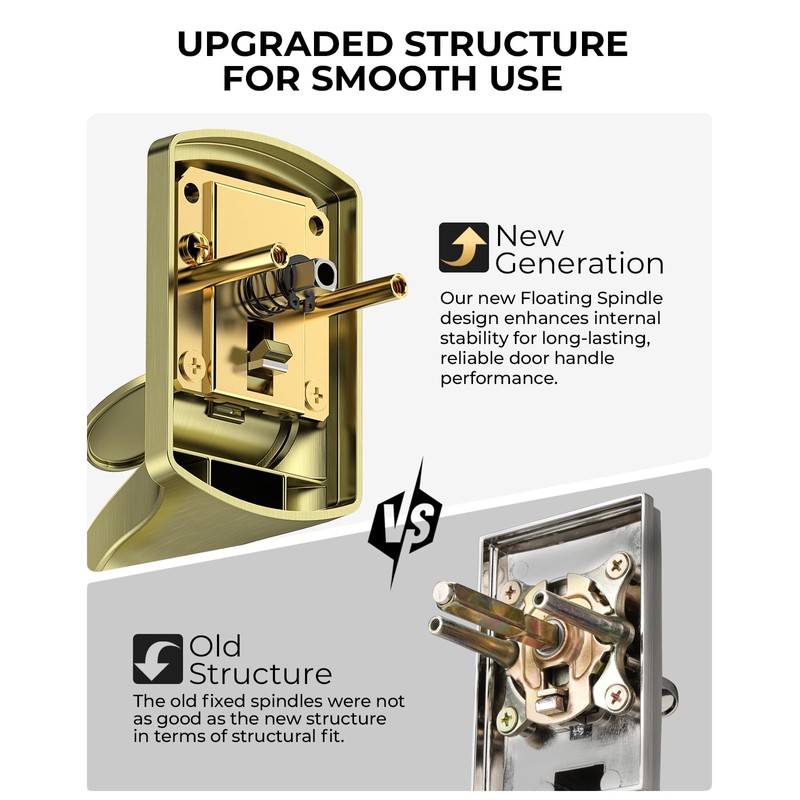 - Upgraded Mechanism: Latest floating spindle design ensures smooth and quiet operation. Engineered for durability, this entry door handle has been tested to withstand over 250,000 uses. Great for those seeking a dependable door handles for long time use