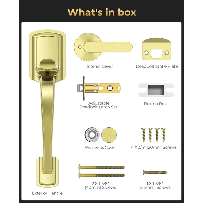 - Built to Last: Crafted from great zinc alloy and backed by years of proven craftsmanship, this gold door handles is built for strength and durability. The solid construction greatly reduces the risk of bending, breaking, or wear over time—an ideal upgrade to your door handle exterior