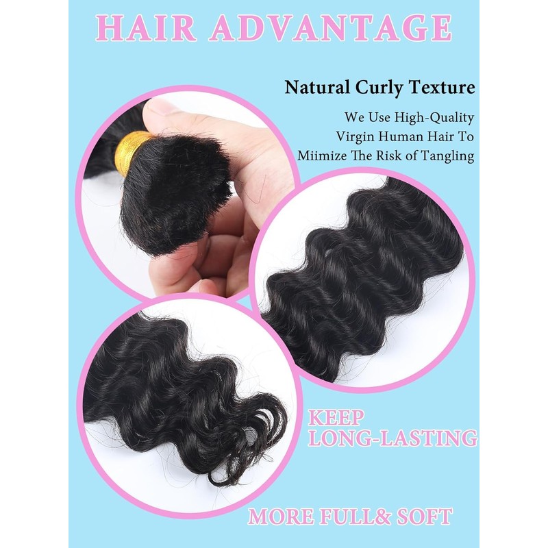 - 【Über Länge und Gewicht】: Das tief gewellte, lockige Echthaar zum Flechten von nassem und welligem Echthaar ist 35–55cm lang. 50g pro Bündel, 2 Bündel/Packung. Wenn Sie volle Zöpfe mögen, empfehlen wir Ihnen den Kauf von 3–4 Packungen Echthaar Flechthaar.