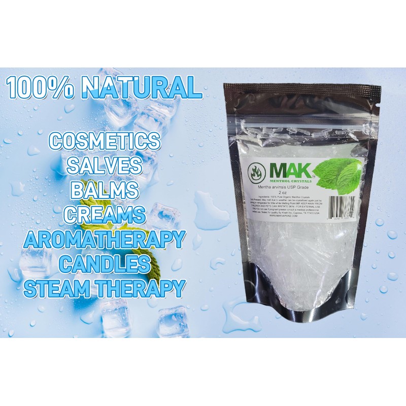 Mak Menthol Crystal 2 oz Pure Organic 100% Natural Menthol Crystals from Mint Crystal Mentha Arvensis Resealable Standup Bag Long-Lasting Freshness