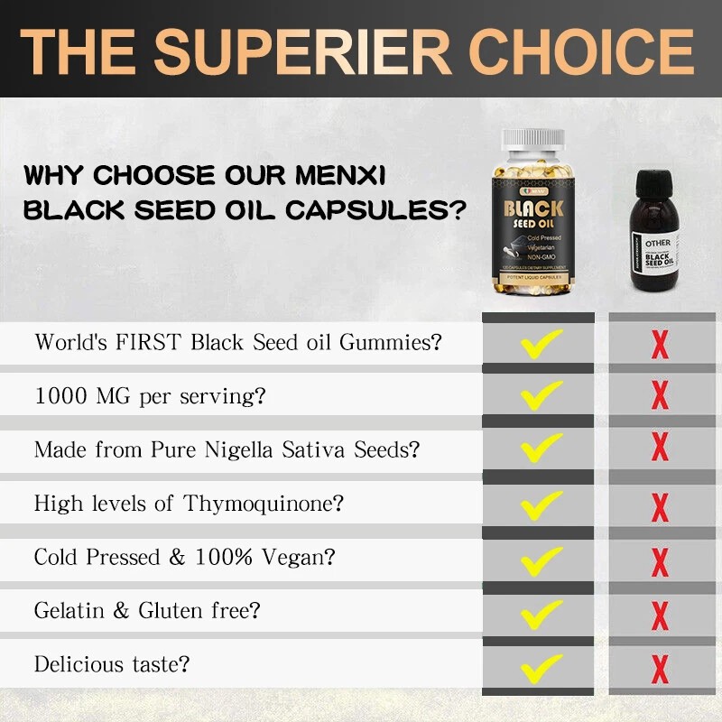 MENXI 1000mg Black Seed Oil,Premium Cold Pressed,Non-GM