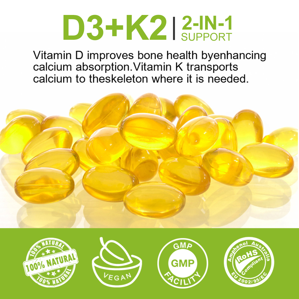 - Active Ingredients: Vitamin D3 (Cholecalciferol), Vitamin K2 (Menaquinone), Vitamin