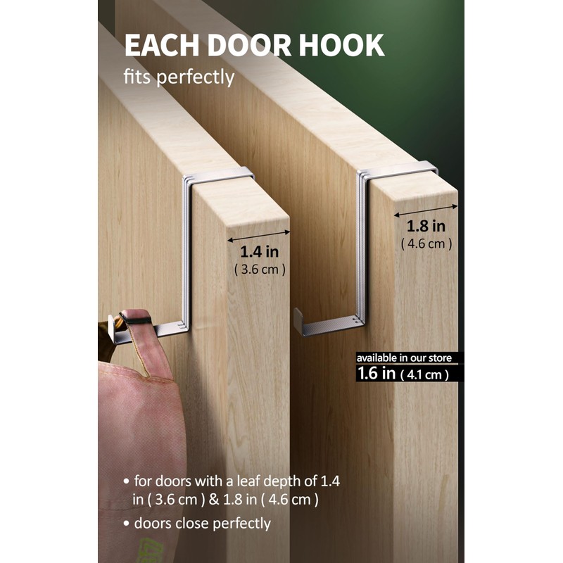 - Each door hook fits perfectly - Thanks to different rebate depths on both sides, the door hooks over the door hook hanger fit all doors with a door leaf depth of 1.4" (3.6 cm) and 1.8" (4.6 cm).