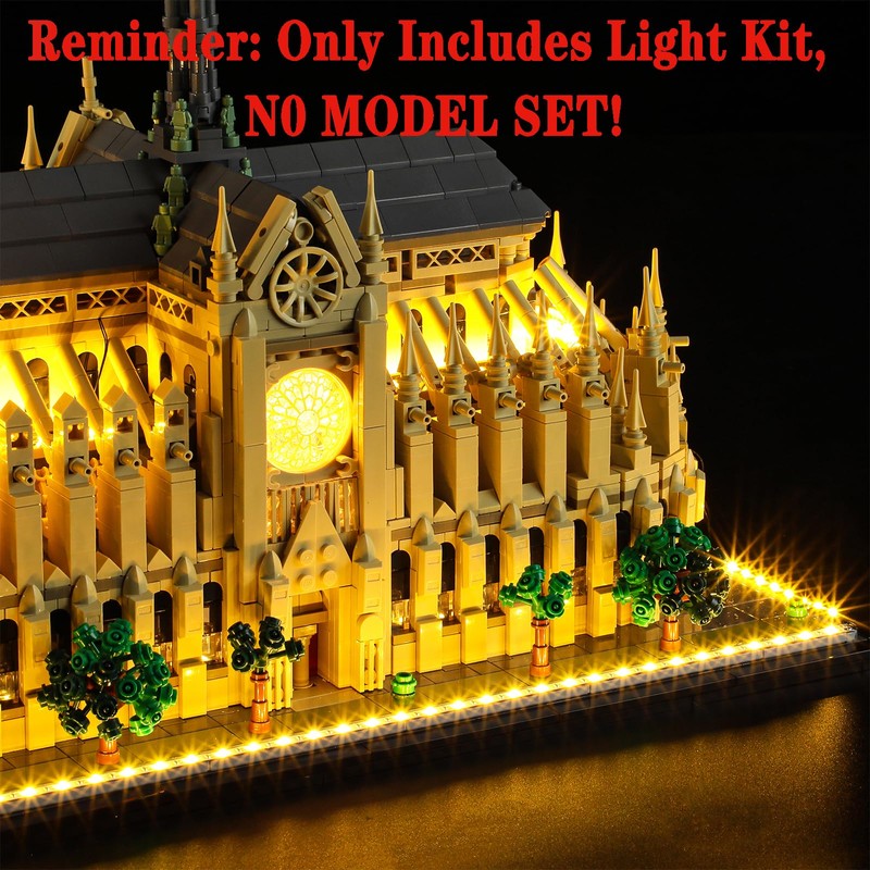 MENZAVA Light Set Compatible with 21061 Notre-Dame de Paris Architecture - LED Lighting Set for Building Blocks Model - Model Set Not Included