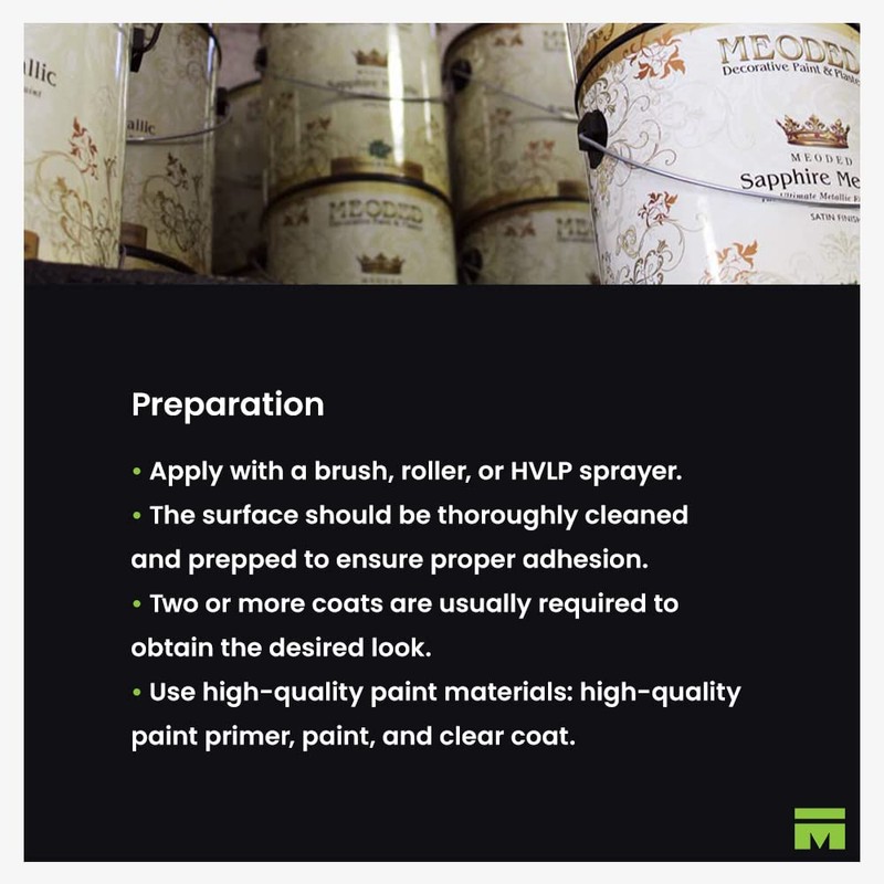 - Versatile; apply two coats in a crosshatch pattern to produce an organic look and variation of a glittery, metallic effect; try different painting techniques, such as dry-brushing or sponging, to create a unique look
