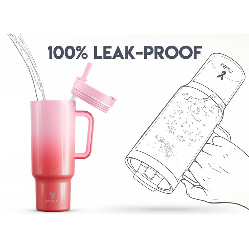 - 34 HOURS COLD: Thanks to the double wall vacuum insulation, Meoky 40oz tumbler with handle keeps drinks cold for up to 34 hours. Enjoy perfectly chilled drinks anytime.