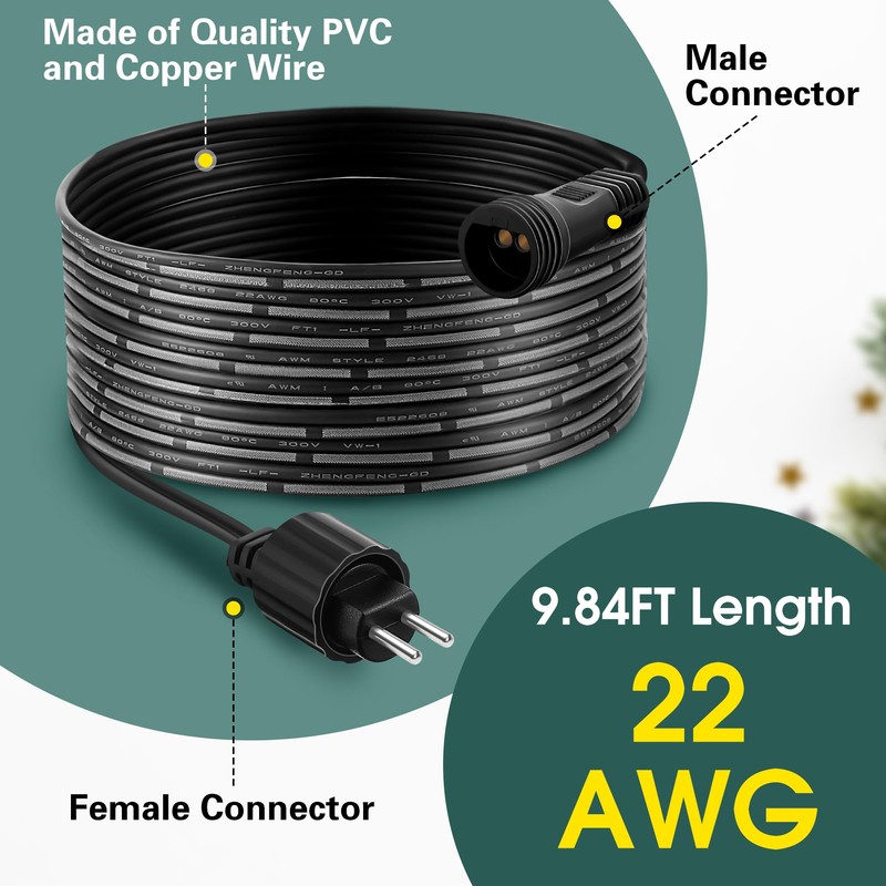 - Easy to Use: with a length of 9.84 FT/ 3 Meter long, the male to female extension cable is plug and play, simply connect it to the power supply and your device; Please align both joints according to the arrows, insert and screw down, and the cables are successfully connected