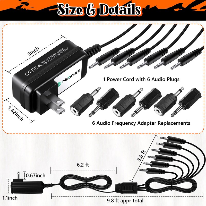 - All in One Adapter: this power adapter connects 6 cables with 6 black audio plugs, which can provide power through inserting different village accessories simultaneously; Notice: the cord is 9.8 feet totally
