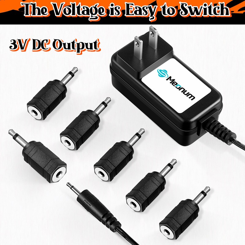 Meonum Black Power Adapter Compatible with Department 56 Village Collections, UL Certified 3V AC/DC Power Cord, 6 Selectable Plugs for Christmas Village House Vacation Lantern Street Lamp Accessories