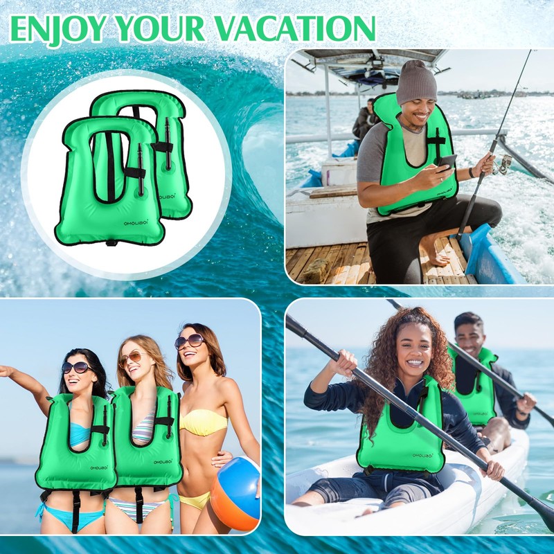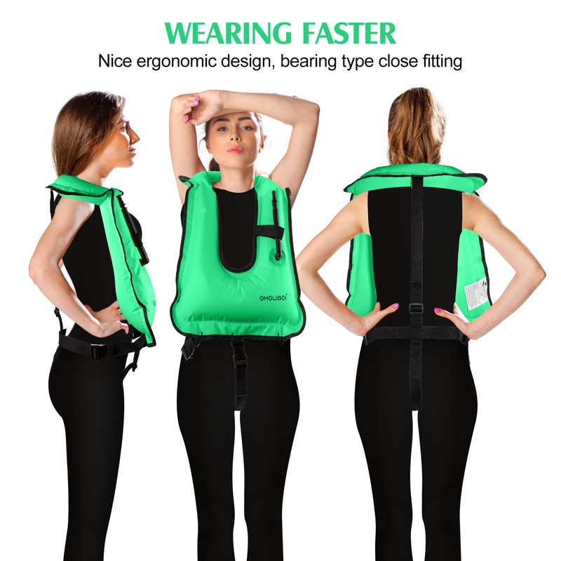 - Fast Inflation and Deflation: just fully inflate the safety vest for adults through the convenient mouthpiece location, without the need of excess air, and it will lock automatically, saving you time and effort