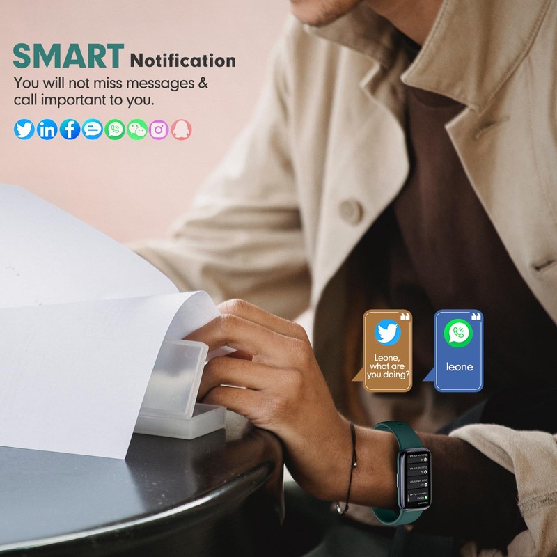 - 【Messages Notification 】After stay connected,receiving the buzzing notification on your wrist for incoming calls, text and app messages including Facebook,Twitter, WhatsApp, SMS, email, and otherapp notifications. Receive call and message alerts easily directly from your wrist. The watch also features sedentary reminders, (Corresponding permissions must be given when pairing and in app settings).