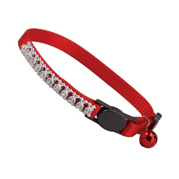 Meow Town Nylon with Rhinestones Cat Collar, 3/8-Inch, Red