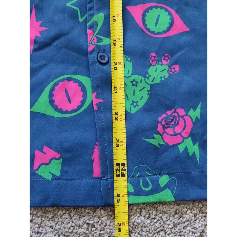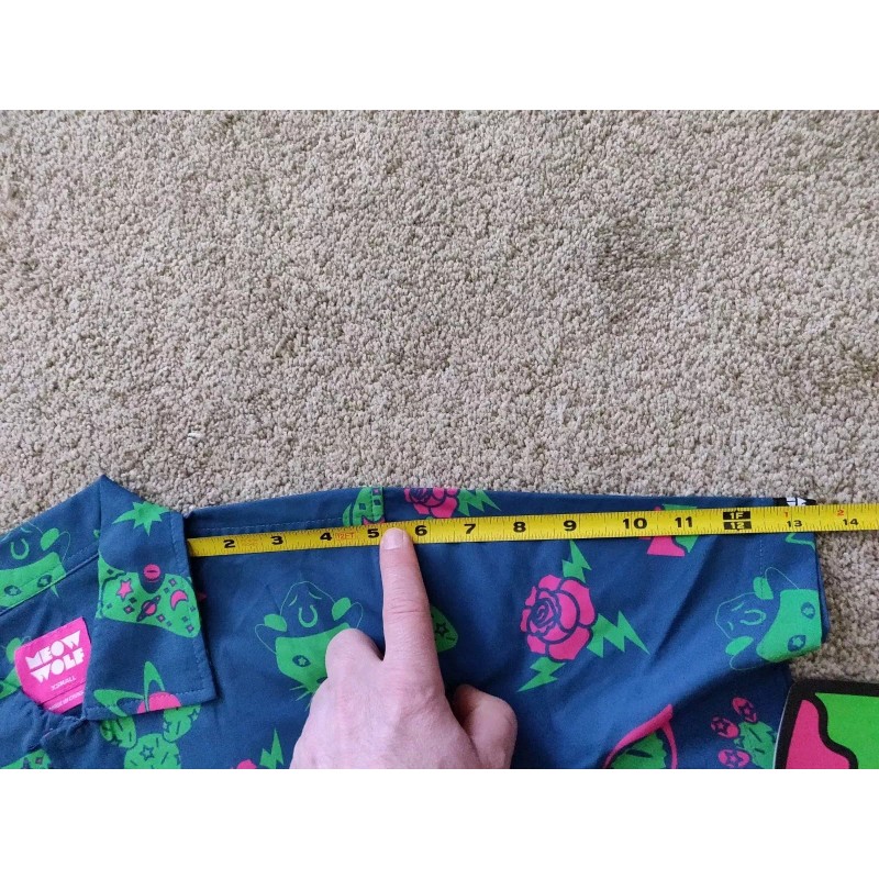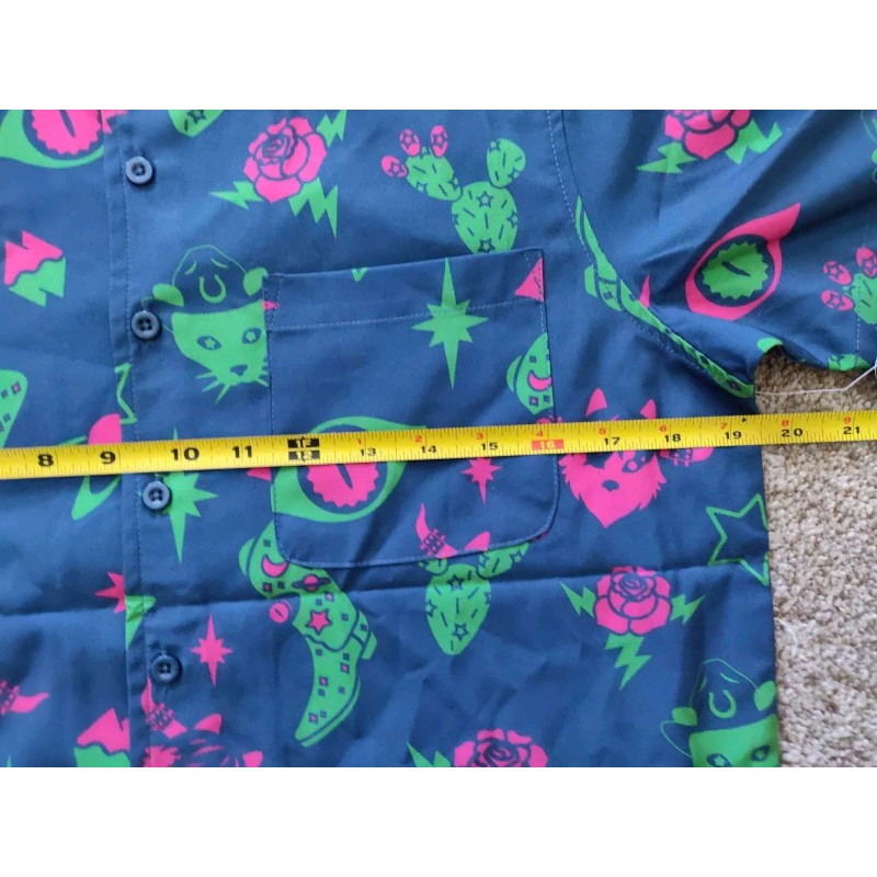 Meow Wolf Shirt Men's Size XS Blue Cat Rose Button Up Loop Collar Stretch