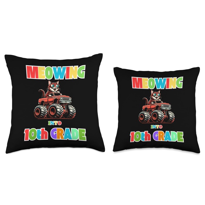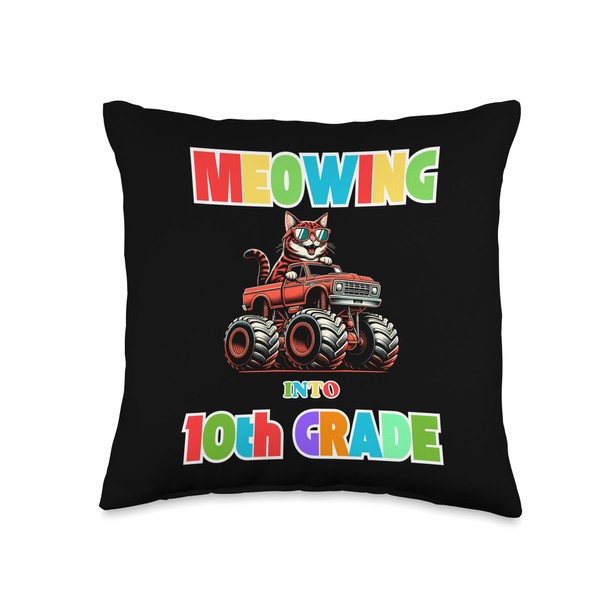 Meowing Into 10th Grade Funny Cat Back To School Throw Pillow