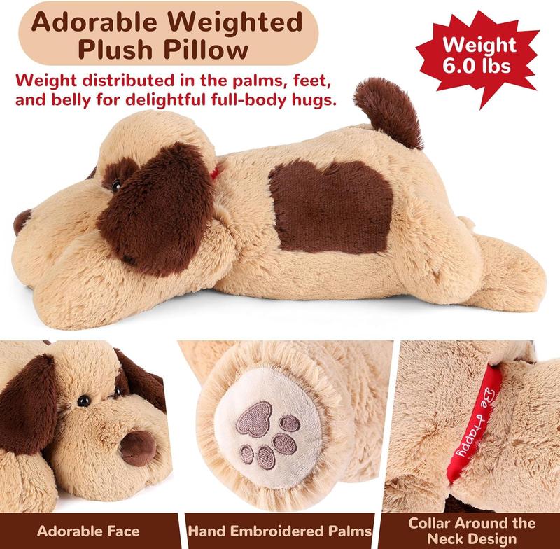 meowtastic Brown Dog Weighted Stuffed Animals - 4.5/6.0 Pounds Weighted Plush Dog Stuffed Animals - Cute Plush Toys Gifts for Kids & Adults - Size: Big :4.5lbs-22inches