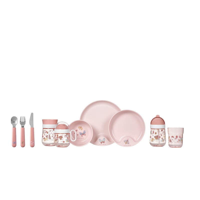 Mepal Mio – Kinderteller – Flowers & butterflies – robuster Plastikteller – mikrowellenfest – praktische Einbuchtung im Rand - spülmaschinengeeignet