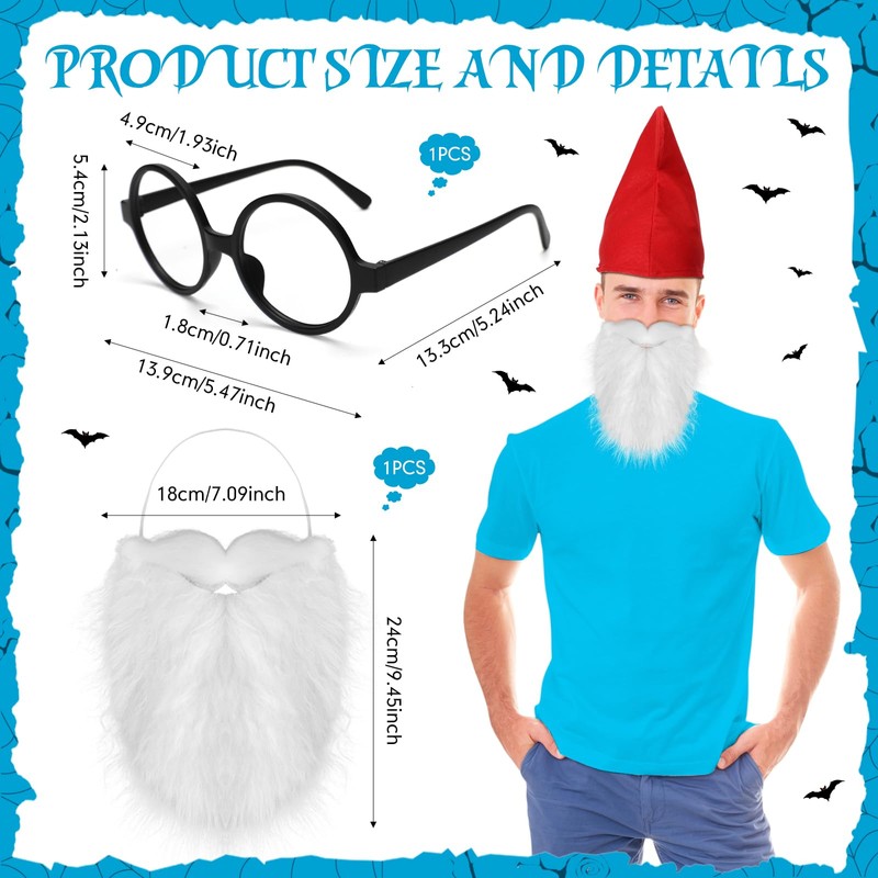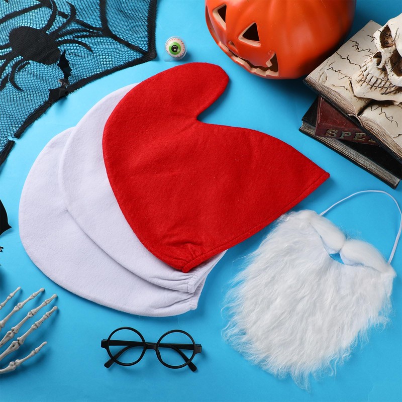 - Package Included: our delightful elf role-play accessories include 3 felt elf hats, 1 white beard set, and 1 pair of glass in black; Wearing our elf costume ensures that you will truly stand out at any costume party; The full set guarantees you a complete Halloween experience