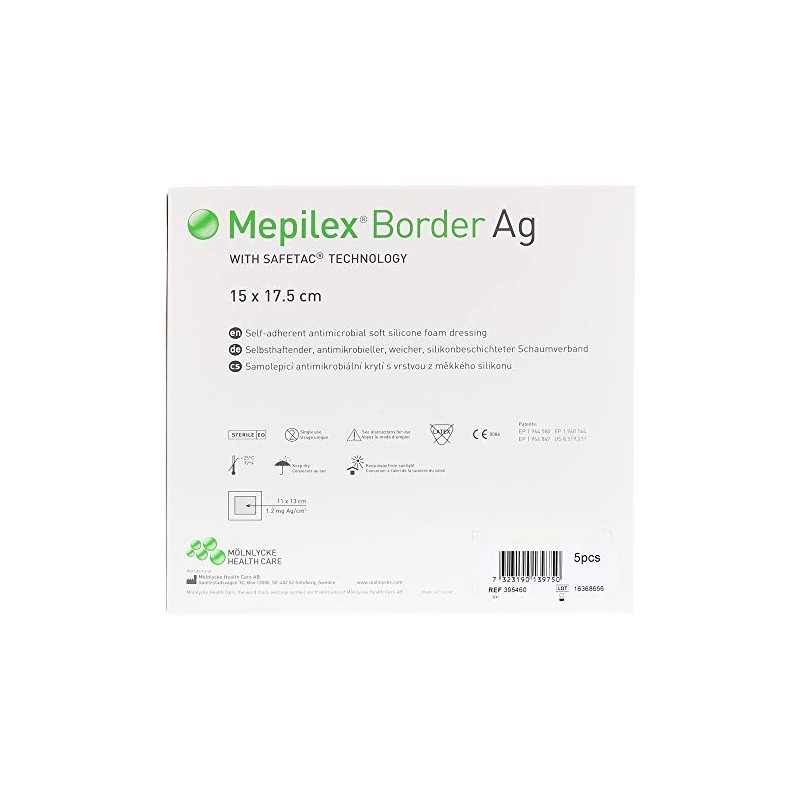 Mepilex 395460 Border Ag, Antimicrobial Absorbent Foam Dressing, 15 cm x 17,5 cm, Uk (Pack of 5)