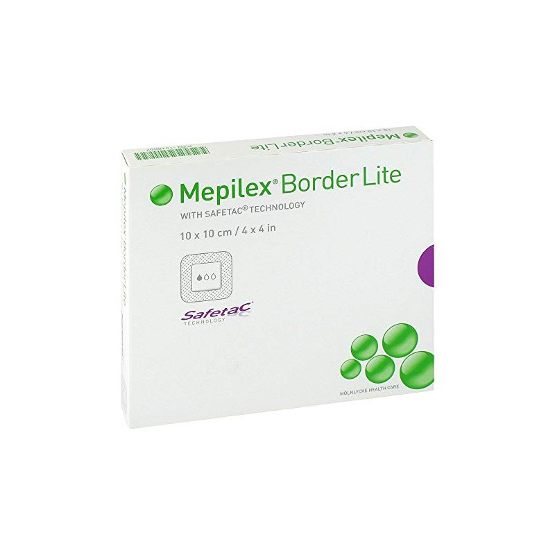 Mepilex Border Lite is a thin all-in-one foam dressing for low exuding wounds. You can use it for chronic wounds and acute secondary healing wounds such as diabetic foot syndrome, traumatic wounds or suture wounds. Thanks to the thin design, the bandage is very comfortable to wear. The adaptable dressing is ideal for hard-to-connect areas such as feet and toes as well as hands and fingers. It features Safetac - the original contact layer with silicone adhesion that minimises pain during dressing changes. It sits gently on the skin without sticking to the damp wound - so you can easily remove the dressing without damaging the skin. This makes dressing change less painful. You can reposition it with minimal loss of adhesion. You can wear the bandage when showering. Suitable for low-exuding chronic wounds such as diabetic foot ulcers, for acute wounds such as traumatic or post-operative wounds, for wounds in difficult to connect areas, e.g. feet, toes, hands, fingers, to maintain a moist wound environment - for optimal healing conditions.