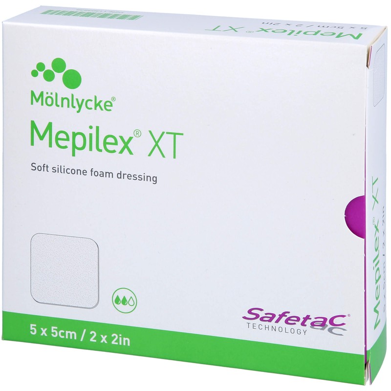 Der Mepilex XT Schaumverband wurde für mäßig exsudierende Wunden entwickelt. Er kann größere Flüssigkeitsmengen zurückhalten und nimmt Flüssigkeit schneller auf als andere Schaumverbände. Er ist anpassungsfähig und vielseitig einsetzbar. Sie können ihn zur Behandlung von Wunden mit normalem und viskösem Exsudat während allen Phasen der Wundheilung verwenden. Mepilex XT enthält unsere Safetac Wundkontaktschicht. Verbände mit Safetac verursachen weniger Schäden an Wunde und Haut beim Verbandswechsel, das ist klinisch erwiesen. Durch Versiegelung der Wundränder wird Mazeration vorgebeugt. Weniger Schäden an Wunde und Haut bedeutet weniger Schmerzen beim Verbandswechsel.